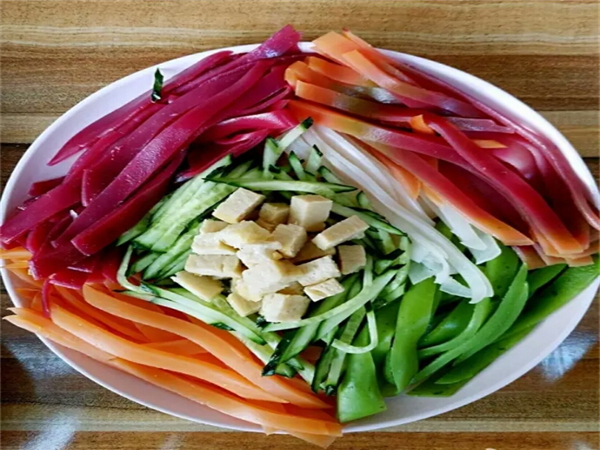 五彩涼皮選用優質面粉,各種綠色營養蔬菜,營養調和油,上好的辣椒加以秘制調料精制而成,具有爽口、開胃提神之特點,五彩涼皮堪稱涼皮中的佳品,因此深受消費者喜愛與得到美食愛好者的一致認同。